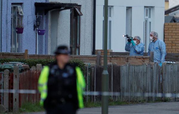 英國警方在拘捕一名倫敦地鐵恐襲疑犯后,科學鑑證人員在其住所附近進行搜證。路透社