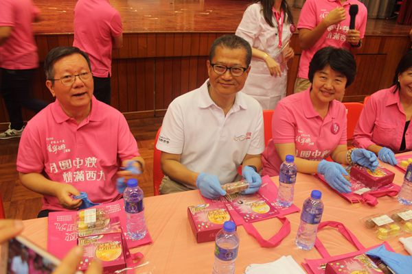 【香港商报网讯】香港九龍潮州公會等10個團體,昨早在港九潮州公會中學禮堂舉辦「月圓中秋 情滿西九」造餅慈善活動。財政司司長陳茂波、中聯辦九龍工作部副部長王小靈、活動青年大使方力申等蒞臨主禮,與九龍西的青少年朋友逾400人一齊,分享中秋節的美好回憶,並即場製作潮式月餅,預賀中秋佳節。