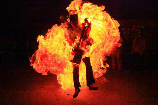 破地獄跨火海滿足所需:新界民間的盂蘭勝會除有潮式佛教法會,正一派也是常見的宗教模式,像西貢墟、沙嶺竹園村、流浮山、馬灣、坪洲、長洲、逢吉鄉和軍地便都聘用喃嘸先生。正一喃嘸主理的法會,新派的都有「破地獄跳火盆」這驚險環節,意謂助先人陰靈跳出地獄火海。現今在靈堂打齋,一般師傅只跨一次「火海」就要收手,因殯儀館怕大量濃煙污染冷氣系統,令靈堂滲出異味,遭人投訴。但在戶外場地,就不用有此考慮,特別是在郊區,像2017年新辦的古洞盂蘭法會,有喃嘸師傅便來回跨了近20次火海,每回都是提着先人龍位「硬闖」火山,絕無從側邊繞過的偷雞取巧,其專業精神實在難得,當然這也需要有客觀環境的配合,方可施為,真可謂功德無量!