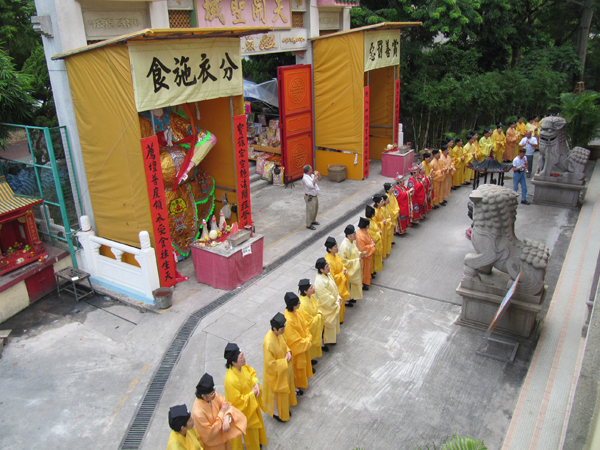寺觀法會深受市民喜愛:香港最具代表性的大型道觀和佛寺都集中在新界和離島,道觀如蓬瀛仙館、青松觀、圓玄學院、雲泉仙館等,這些宮觀所採用的以全真科儀為主,法會堂皇恢宏,易招城市人好感。佛寺則有西方寺、寶蓮寺、觀宗寺等,主要是由外江和尚誦經,昔日以做廣東釋家為主的寶蓮寺,因外江師傅的大增,近年也難聞廣東經了。以上的寺觀,由於不少附設有骨灰龕(按:特別是道觀),故每逢鬼節法會,孝子賢孫擠滿壇場,插針難入,足見七月鬼節是繼清明重陽以外,中國人第三個最重要的思親節。