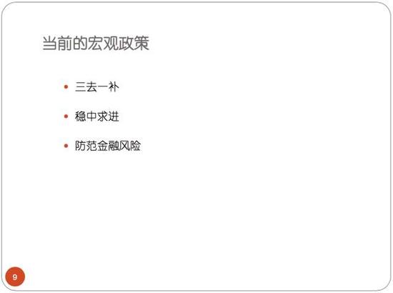 除了國家政策以外,目前的宏觀政策大家都很清楚,三去一補,去產能去庫存去杠杆補短板啊等等,這個大家都很清楚。