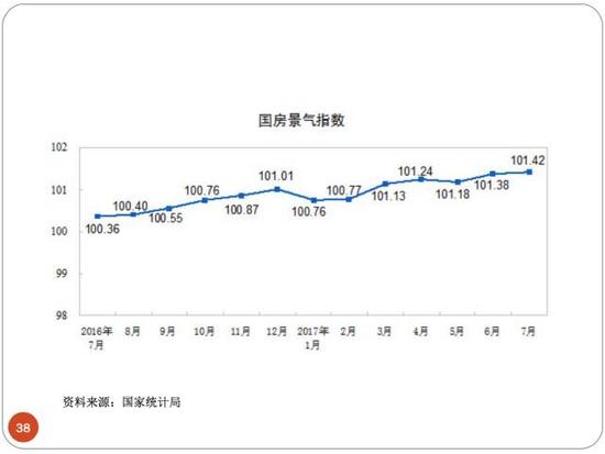 大家別以為那條藍線是下降趨勢,他是叫增幅下降。增幅下降不代表絕對額下降,你們千萬不要搞錯了,我們所有公布的住房價格數據,都是增幅。增幅下降不表示絕對額下降。如果我前頭增了百分之十,現在增百分之八了,還是增啊,所以不等於絕對額下降。