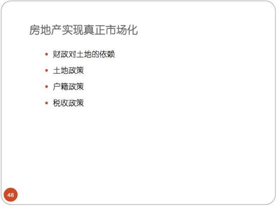 因此我們希望真正實現市場化,第一個是土地問題,不改變土地政策難以實現長效機制,什么都是白搭,第二個是如果戶籍制度不改,稅收制度不改變,我們很難實現真正的市場化。
