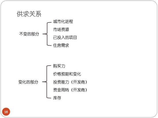 上面三個因素對於供求關系來說產生了兩個部分,第一個部分是不變的部分,就是不管你宏觀政策怎么調它都不會發生變化。另一部分是隨著宏觀政策變化的,就是你調了我就得變。比如說你出了個政策我就得辦離婚啊,這就是變的部分。