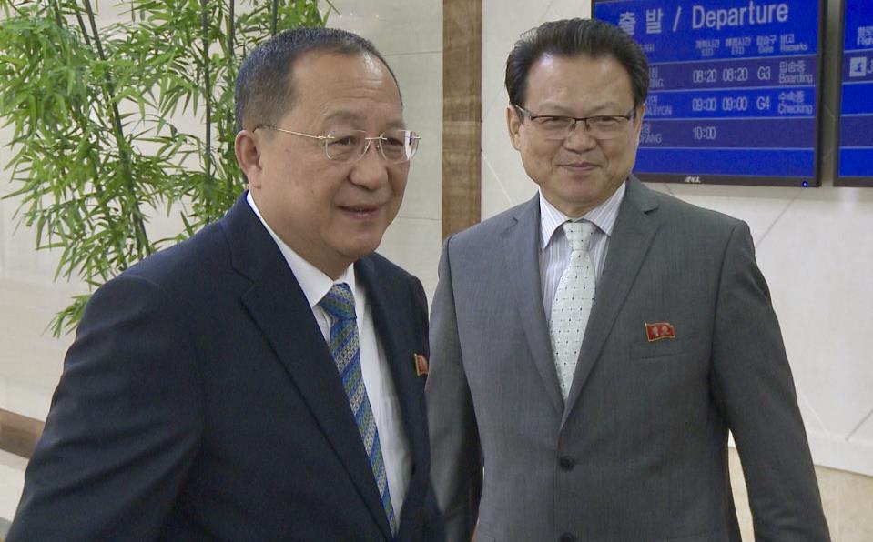 19日,朝鮮外相李勇浩從朝鮮平壤順安機場出發,前往紐約參加第72屆聯合國大會。朝鮮外務省官員前往機場送行。李勇浩將從北京轉機前往紐約。