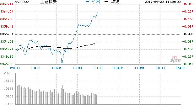 9月20日消息,滬深兩市早盤縮量反彈,深成指表現較強。芯片概念、新能源汽車、鹽湖提鋰概念等近期熱點持續活躍走強。截止上午收盤,滬指報3364.34,漲0.22%,深指報11161.87,漲0.70%,創指報1886.39,漲0.32%。