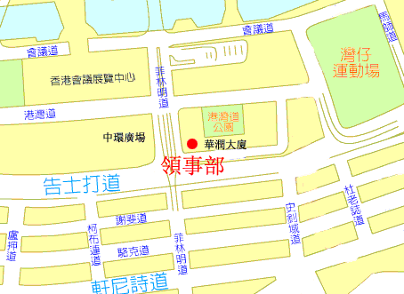 中国外交部驻香港特别行政区特派员公署领事部地址:香港湾仔港湾道26号华润大厦4楼。电话:(852)-34132403/34132404(星期一至星期五办公时间)