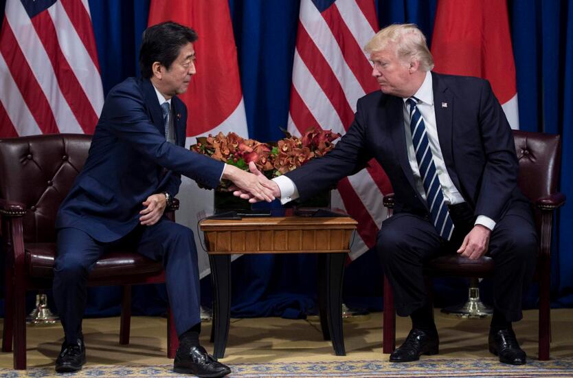 当地时间9月21日,美国纽约,联合国大会期间,美国总统特朗普与日本首相安倍晋三会面。