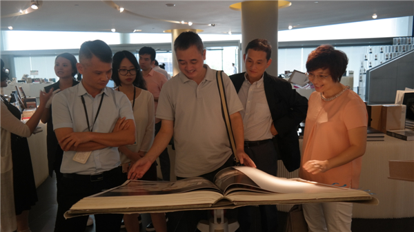 置身在书的海洋中,被如此之多的精品包围。采访团长、香港新闻工作者联会副主席顾尧坤相中了《观音画艺术》,采访团副团长、本报执行总编刘晓东当即就买下了《新中国美术图史(1966-1976)》。同时,这里的高仿书画,以及个性订制书籍的平台,也引起了记者们的兴趣。据悉,利用强大的数据中心,雅昌深圳艺术中心开办起智慧博物馆,并还在加快互联网推广应用。