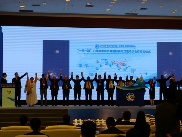【香港商報網訊】記者李苑立 冷運軍報道:22日,2017廣東21世紀海上絲綢之路國際博覽會產融合作發展高端論壇在廣州舉行。會議現場,國際實用漢語培訓項目合作舉行簽約協議,包括肯尼亞國家工商會、約旦安曼工商會、南非開普敦商會等17個境外商協會共同舉行了“一帶一路”沿線國家商協會國際實用漢語培訓合作啟動儀式,該項目亦成為本屆海絲博覽會主題論壇最受矚目的成果。