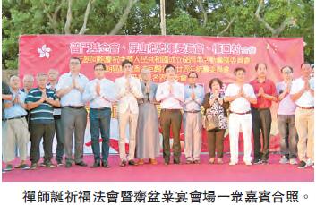 【香港商報网訊】普門基金會、屏山鄉鄉事委員會、欖口村合辦;元朗區慶祝香港回歸祖國20周年統籌委員會、元朗同胞慶祝中華人民共和國成立68周年活動籌備委員會及新界各界籌委會協辦的「慶回歸賀國慶」公庵禪師誕祈福法會暨齋盆菜宴日前舉行,宴請逾千名市民歡聚一堂,共用齋盆菜。