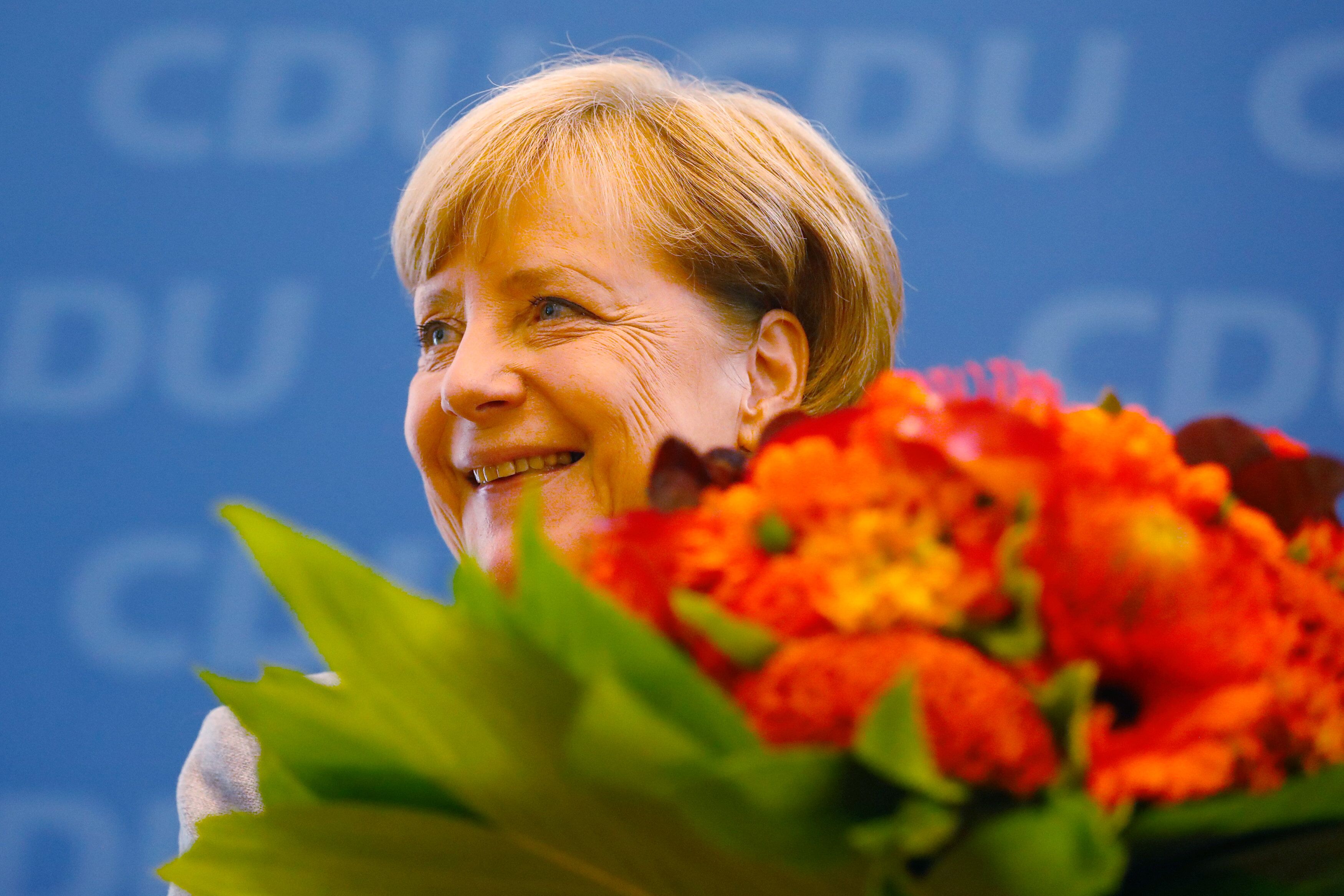 默克爾在黨總部接受黨友和支持者的祝賀。