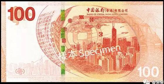 紀念鈔以紅色為主色調,正面以中銀大廈為主景,以「樓中樓」手法,映襯早期中銀香港分行大樓及北京中銀總行大廈,展現中銀在香港服務100年的歷史,鈔票背面以萬里長城和堅實的古建築為側寫。是次紀念鈔單張共290萬張,每張售價288元,三連張共30萬套,每套售價988元,整版三十連張共4萬套,每套售價13888元。認購者必須為2017年內年滿18歲并持有效香港身份證人士,申請者可通過中銀網站或於中銀分行遞交申請表,如認購申請總數超過相關紀念鈔種類的發售配額,將以抽籤方式分配。