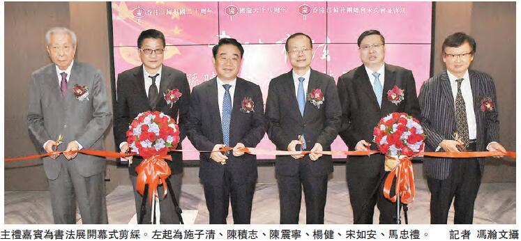 展覽昨日於香港江蘇社團總會會所隆重開幕,江蘇省副省長陳震寧,中聯辦副主任楊健,外交部駐港副特派員宋如安,民政事務局副局長陳積志,中聯辦協調部部長沈沖、宣傳文體部副部長朱挺、社團聯絡部副部長黎寶忠,江蘇旅港同鄉聯合會會長馬忠禮,中國書法家協會香港分會主席施子清等嘉賓為書法展剪綵。