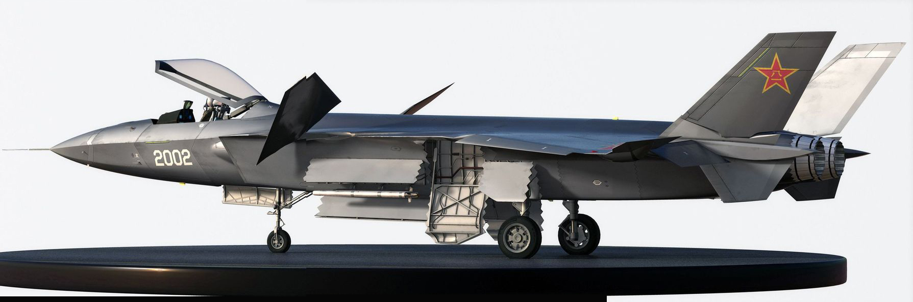 此外,殲-20的航空電子設備和雷達系統也相當复雜,除了機頭裝備的機載相控陣火控雷達之外,還有側視雷達和各種光學傳感器,各種電子天線則集成在機身各處,如鴨翼與主翼間的電戰天線,主翼前緣CNI天線陣,進氣道外側電子干擾天線等。側彈艙采用創新結構,可將導彈發射挂架預先封閉於外側,同時配備中國最先進的PL-21新型空對空導彈。