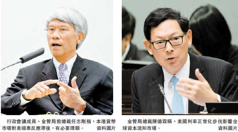 任志剛指,美聯儲縮表及加息在即,美元貨幣市場已作出反應,惟香港市場好像反應滯后,或許已經有理順的必要。當然,港美息差擴闊,最終是會引發資金外流而將港元匯價推至7.85弱方兌換保證水平的。當金管局依兌換保證沽售美元,便會令總結餘下降和港息上升。但如果這是一個突發的過程,鑑於現在總結餘的量似乎遠遠超出便利同業支付所需,是有可能引發巿場恐慌或震蕩的。
