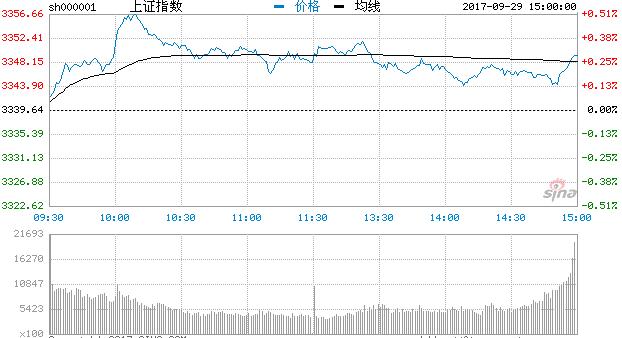 9月29日消息,滬深兩市早盤集體高開,全天呈現沖高回落的走勢。盤中,前期強勢的5G、芯片替代、半導體、充電樁等熱點輪番活躍,兩市個股整體漲多跌少。券商板塊早盤一度帶領股指走高,但隨后回落。長假前最后一個交易日,主力無心上演大動作,兩市成交量與前日持平,滬指周線、月線均以十字星報收,暗示節后或選擇方向。截止收盤,滬指報3348.94,漲0.28%;深成指報11087.19,漲0.51%;創指報1866.98,漲0.66%。