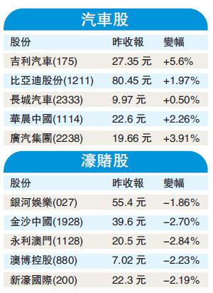 此外,汽車股亦延續升勢繼續踩油,其中吉利汽車(175)再創新高,收報27.35元升5.6%,為表現最好藍籌。而昨日成交第二大的「股王」騰訊曾創新高見353.6元,最終收報352元升0.74%。