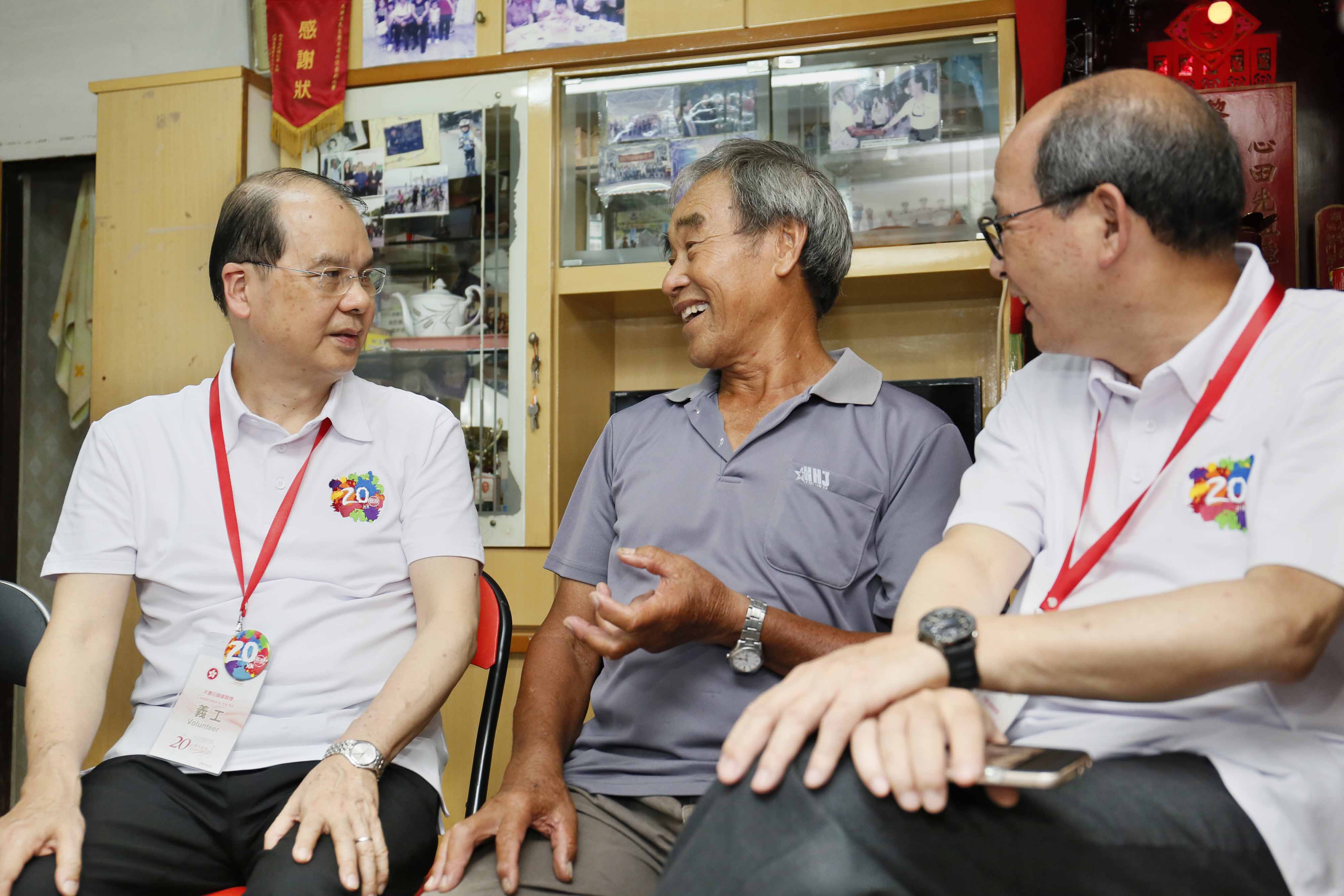 张建宗(左)强调要聆听市民心声,图为他早前落区大埔家访。