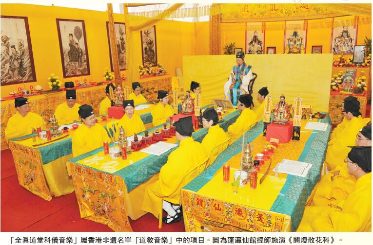 《首份香港非物質文化遺產清單》收錄了8項有關全真道的非物質文化遺產,包括了:「全真」的道教科儀音樂、上樑儀式、太平清醮、祠堂開光儀式、道教婚嫁儀式、廟宇開光儀式、龍舟開光儀式、入道暨登小座。筆者期望隨非遺教育的普及,可以有更多香港市民認識擁2000年發展歷史的道教及其文化。