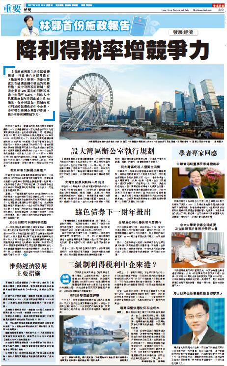 林鄭月娥在《施政報告》中提出將企業首200萬元利得稅下調至8.25%,以及為合資格研發開支提供兩倍至三倍免稅額,對增強香港競爭力、推動新興或創新科技產業的發展產生積極影響。他認為,《施政報告》提出了理財新哲學,并可有條件利用較豐厚的財政儲備,增加投入,促進社會及經濟發展。