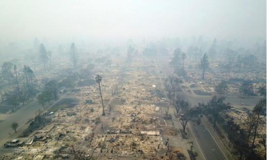 图为美国加州圣塔罗莎市被烧毁的科菲公园住宅区。