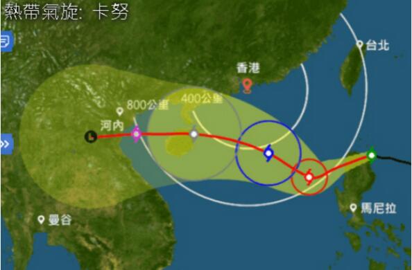 据巴士的报报道,本港周日天氣料顯著轉差,大風大雨,風力或達3號風球標準!根據最新路徑及預報顯示,風暴卡努路徑進一步靠近香港,進入本港400公里範圍圈,預料周日及周一都有大雨,而且風力可能達到3號風球標準。