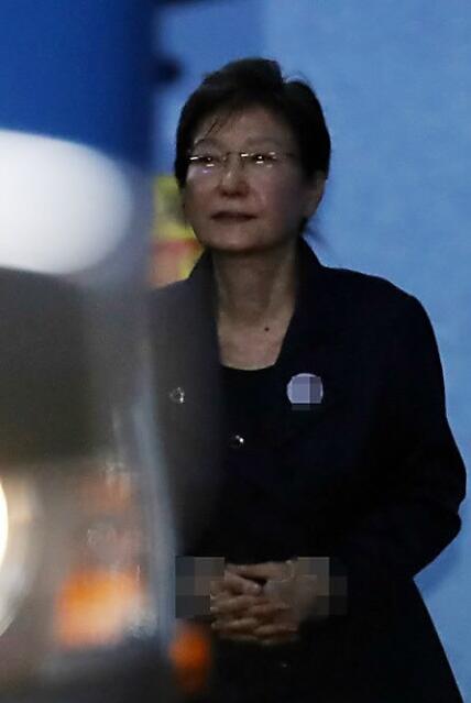 16日,朴槿惠出庭受审结束后,戴眼镜离开