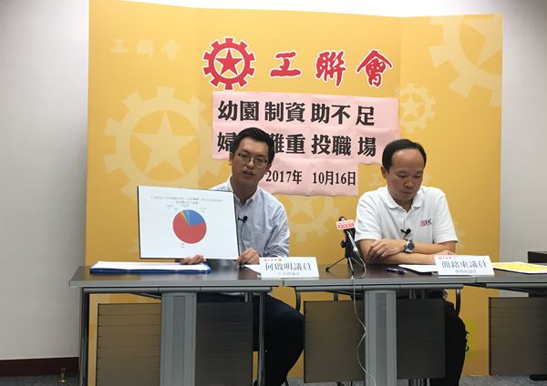 工聯會議員何啟明表示,「免費優質幼稚園教育政策」并非全面免費,不論半日制、全日制及長全日制均要收費,該會希望政府真正推行15年免費教育,加強規管與支援各項雜項收費,增加屋恏等幼稚園校舍,以全面紓緩幼稚園相關的開支負擔,并全面推行長全日制,加強幼兒託管服務,釋放婦女勞動力。