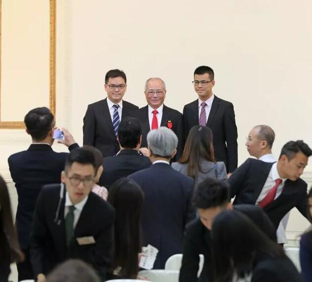 教育局前局长吴克俭获颁金紫荆勋章后与两个儿子合影