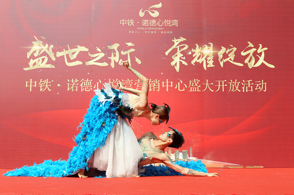 26日上午,在珠海中鐵·諾德心悅灣營銷中心現場,開放盛典在震撼的鼓聲中拉開序幕。端莊典雅的古裝鼓者,震天的鼓聲先聲奪人。一支孔雀舞表演,盡顯自然之美,亦如心悅灣的環境、氣息、生靈。眾多地產圈人士、業主代表等各界精英到場祝賀,活動現場人聲鼎沸,氣氛熱烈火爆。隨著卡都、中鐵雙方代表共同為醒獅點睛,雄獅蘇醒舞動,把愉悅氣氛引志高潮,引得來賓掌聲陣陣。