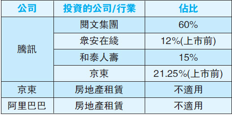 除了初起步的公司,其實各大互聯網巨頭都有不少合作,例如騰訊就是在美上市的內地電商巨頭京東的大股東。