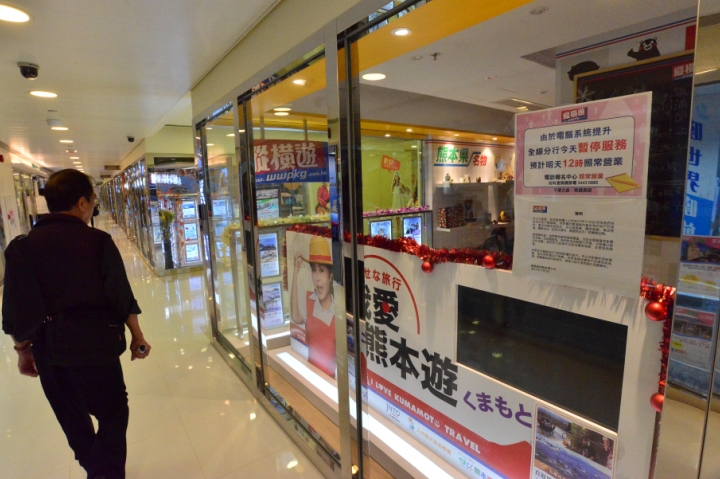 縱橫游电脑被黑客入侵,昨日全線分店贴出告示指要电脑系统提升停业一天。记者 冯俊文摄