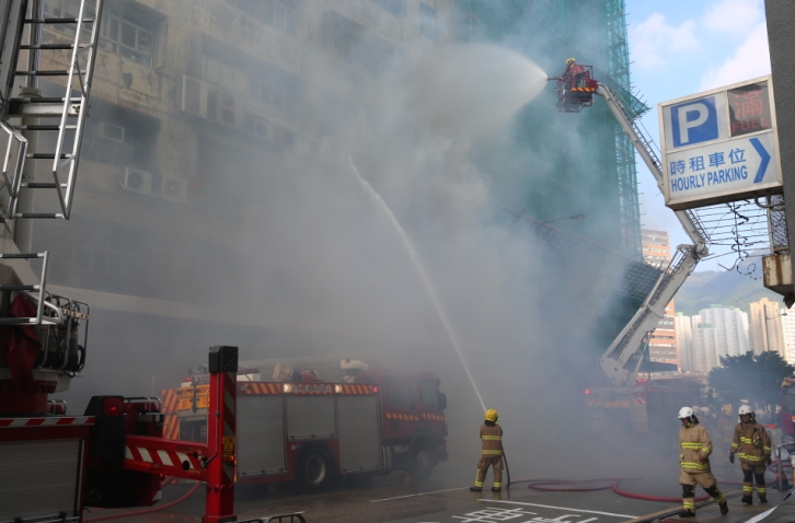 【香港商報网訊】記者區天海報道:新蒲崗景福街發生3級大火,一幢工廈內的製作公司,昨午被職員發現空氣清新機起火,燒着大批雜物,曾傳出爆炸聲,大量濃煙冒出,瀰漫街上,消防到場灌救後將火警升為3級,動員逾百人員合力灌救,肇事公司一名女職員吸入濃煙不適送院,毗鄰中學近800名師生緊急疏散,現場交通一度陷癱瘓。