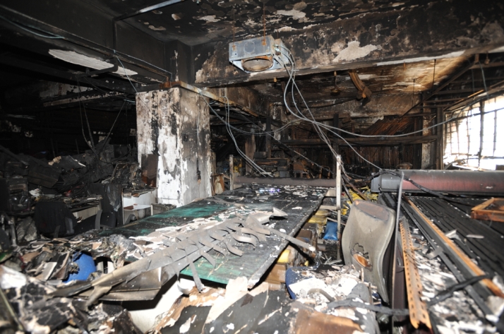 前日發生3級大火的制作公司焚燒近8小時后被救熄,昨晨屋宇署派員到場勘察樓宇結構是否安全。至昨午工廈開始陸續解封,惟工廈的電力仍然中斷,制作公司經烈火焚燒后,大部分家具及雜物已經焚毀,同時發現首先起火的一部空氣清新機的殘骸。