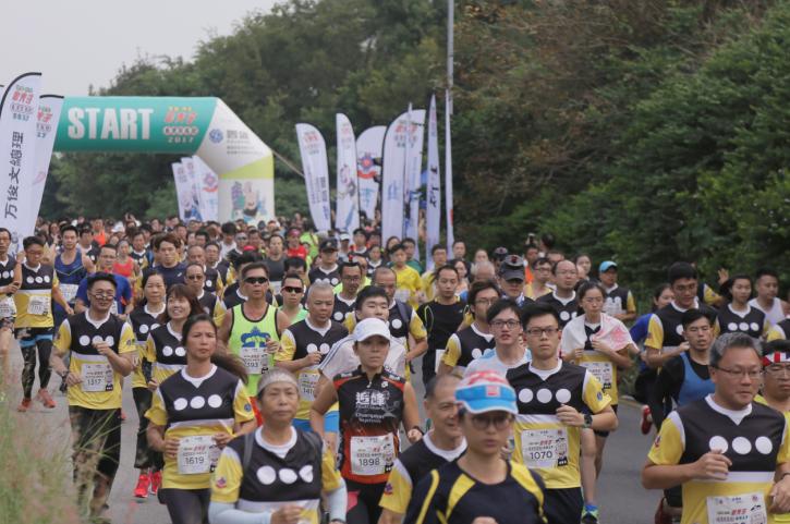 隨着一眾嘉賓鳴槍,「人人都是老夫子」的跑手們,隨即從起點天影路一路向前,沿直線跑到洪天路,先經過兩個折返點,再逆方向沿天影路跑到流浮山消防局折返,最后到達天秀路,在「老夫子」及「大番薯」兩位經典漫畫人物的熱烈打氣下冲過終點。