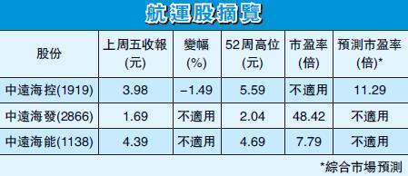 至於中遠海能則擬向包括中遠海運在內不逾10名的特定對象,發行最多8.06億股A股,集資54億元。中遠海運認購A股的金額不逾42億元,目前中遠海運及其聯繫人持有集團已發行股本38.56%,完成後持股將增至約45%。因此,經過此輪集資後,中遠系業務或可望更進一步改善,料刺激股價。