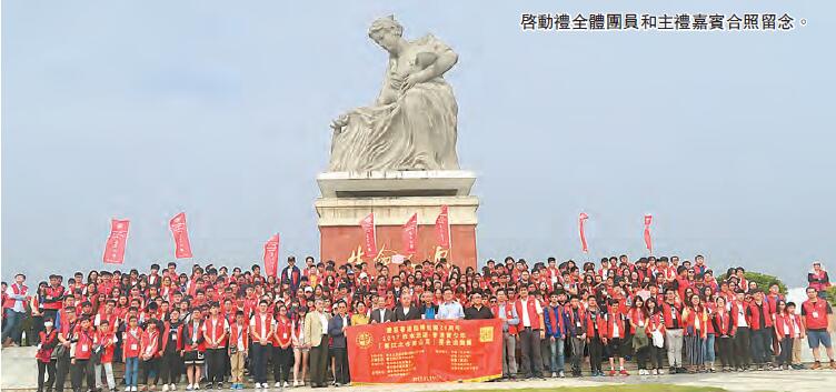 11月19日上午,在塘廈東江供水紀念廣場參加啟動儀式的主禮嘉賓有中聯辦青年部副部長楊成偉,廣東粵港供水有限公司副總經理閆振宇,國家旅游局亞洲旅游交流中心副主任崔素香,全國政協委員、粵港青年交流促進會創會主席龍子明,香港廣東社團總會常務副主席霍震宇,嘉賓還有前中聯辦教科部副部長莫錦強、原廣東省政協華僑港澳臺胞聯絡辦主任曾肇林、河源市紫金縣政協委員龍允浩等,聯同香港國民教育促進會主席姜玉堆、秘書長楊位興、副秘書長莊樹煌和陳勇、常務副秘書長姜盈盛出席。楊成偉進行授旗,嘉賓在「生命之源」雕像前與全體團員合照。