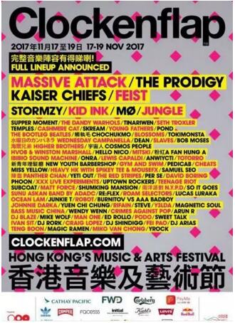 香港最大型的户外音乐及艺术节 Clockenflap 迈入 10 周年纪念。今届盛事将于 2017 年 11 月 17 日(星期五)至 19 日(星期日)于中环海滨举行,将为大家带来超过 100 个国际、亚洲与本地音乐表演单位,重头表演者包括 MASSIVE ATTACK、THE PRODIGY 及最新公布的 KAISER CHIEFS。多元化及具深度的音乐体验横跨 5个表演舞台,,留下难忘美好的回忆。