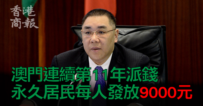 【香港商報网訊】記者戴合聲報道:澳門行政長官崔世安昨日發表《施政報告》。報告建議,2018年繼續實行現金分享措施,政府會向永久居民每人派發9000元,是連續第11年「派錢」。連同今次,每名澳門永久居民已獲派錢累積81000元。另外,針對早前台風「天鴿」吹襲的災情,澳門將提出一系列短中長期防災減災措施,更會在明年啟動編制澳門防災減災10年規劃。
