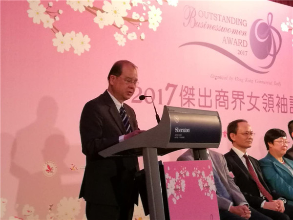 政務司司長張建宗致辞時肯定香港商報推動兩性平等的努力,香港特區政府一直推動男女平等,他加入政府時,公務員男女比例20: 1 ,現已達2: 1 。首長級公務員,由2001年的26%升至目前的37%。
