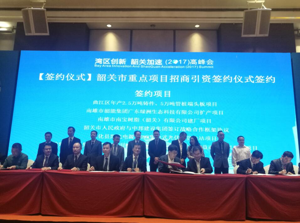【香港商报网讯】记者李芳、林丽青报道:为加速联动深圳与粤港澳地区步伐,推动韶关经济转型产业升级,由韶关市政府主办,深圳市贸促会、企业联合会、众投邦股份有限公司承办的2017 “湾区创新 韶关加速” 高峰会于11月15日在深圳市举行。在高峰会上,分别举行了韶关天使小镇暨天使母基金和韶关市招商引资项目的签约仪式,签约项目共22个,投资总额127.45亿元。