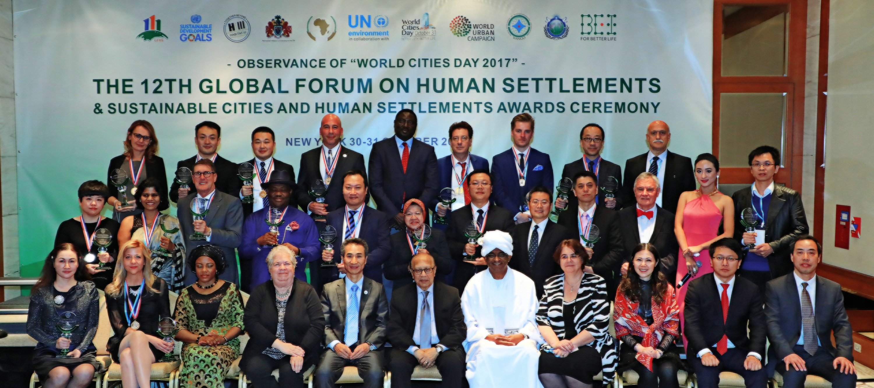 2017可持续城市与人居环境奖颁奖嘉宾与获奖者集体合影。