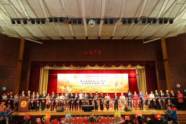 尖沙咀街坊福利會松柏鄰舍活動中心慶祝香港回歸20周年長者節敬老聯歡大會上,賓主合照。