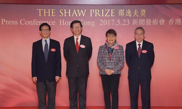 方逸華(右二)今年5月23日出席邵逸夫獎公布本年度得獎者記者會。