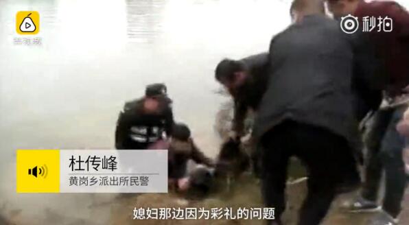 从网络视频中可以看到,在一条小河边,一男子趴在一女性尸体上哭泣,随后突然转身跳入河中,后被民警和周围群众救起。