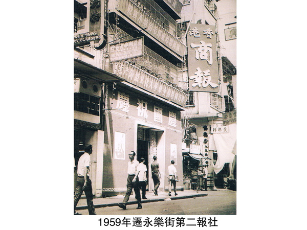 香港商報的第二報社,是在上環永樂街28至30號,屬一幢四層高物業。業主是惠民藥房,原租予五豐行,1958年五豐行搬走,找《香港商報》同事查詢,如有興趣租用不用頂手費,當年月租是一萬六千。1959年,報紙改革成功,銷量日增,原有報社地方不敷應用,同年年底便遷往永樂街。