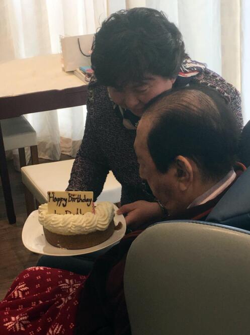 何鴻燊博士與家人共度生日。圖為女兒何超蕸向父親送上生日蛋糕。