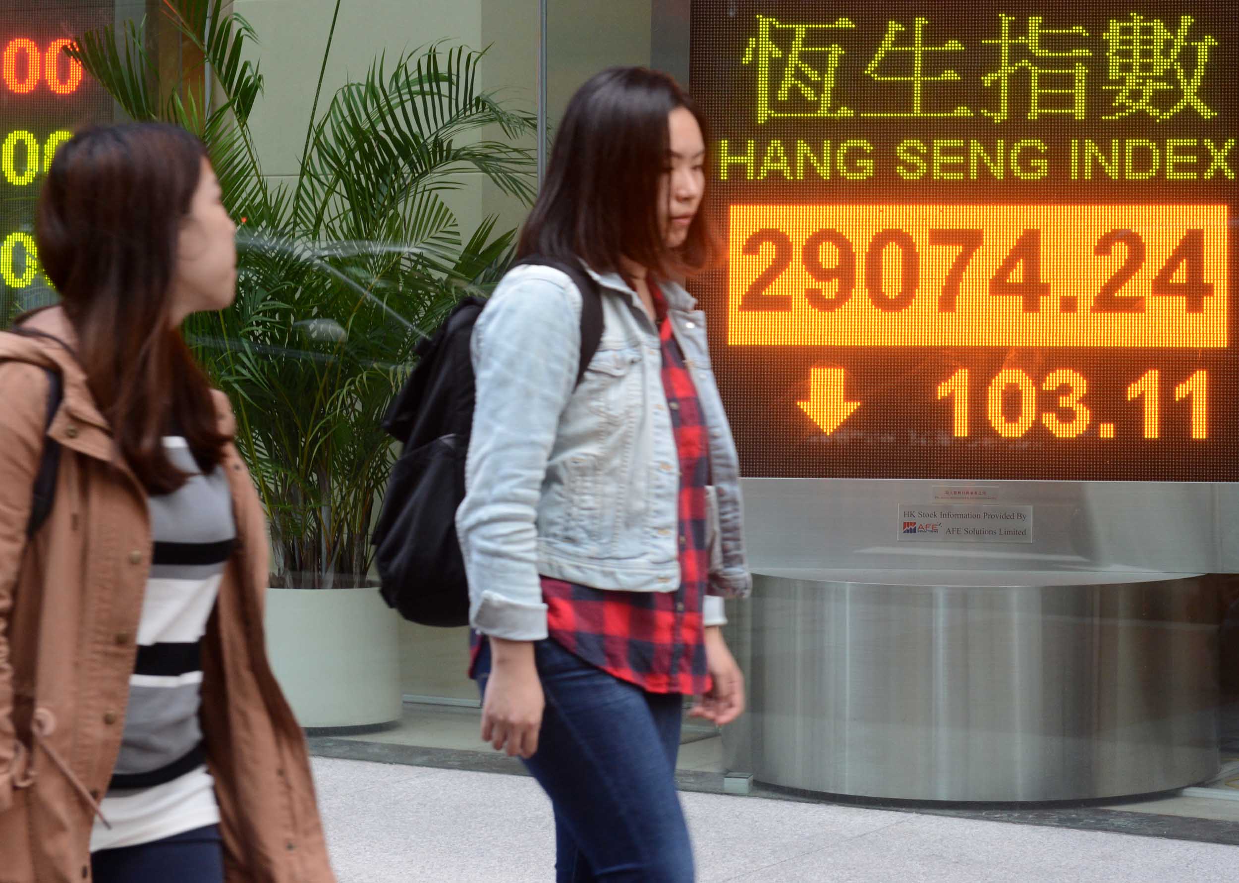 在「股王」騰訊再跌拖累下,恆指昨日跌103點,收報29074點。中新社