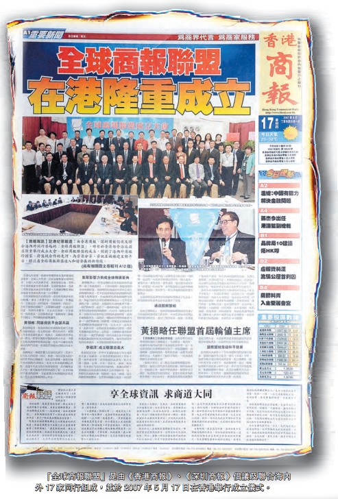 2007年5月16日,由《香港商報》、《深圳商報》倡議及聯合海內外17家同行發起的「全球商報聯盟」(聯盟)於香港正式成立。在成立大會上,「全球商報聯盟」確立「共建平台,共用資源,多邊協作,互動互信,時代報章,同創輝煌」宗旨,在和平發展的旗幟下,以新聞為紐帶,化資訊為財富,從而服務社會,服務商家,服務不同國土、不同膚色的億萬讀者。
